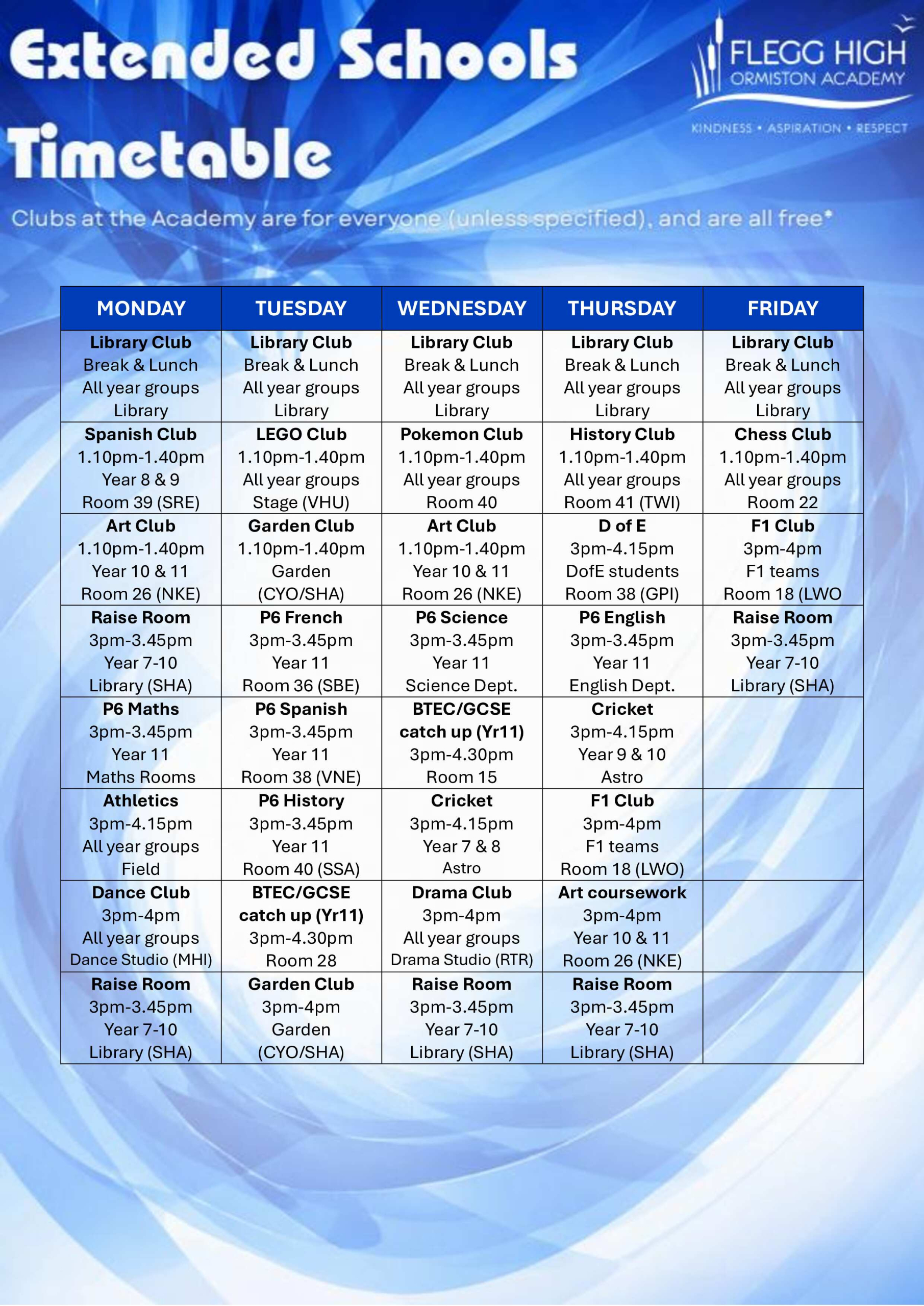 Clubs & Extra Curricular Opportunities – Spring 2 2026