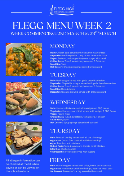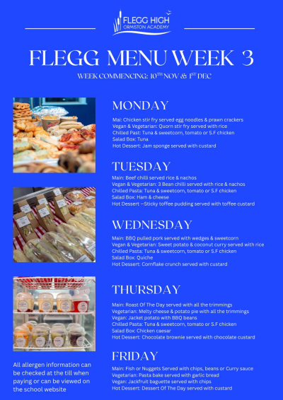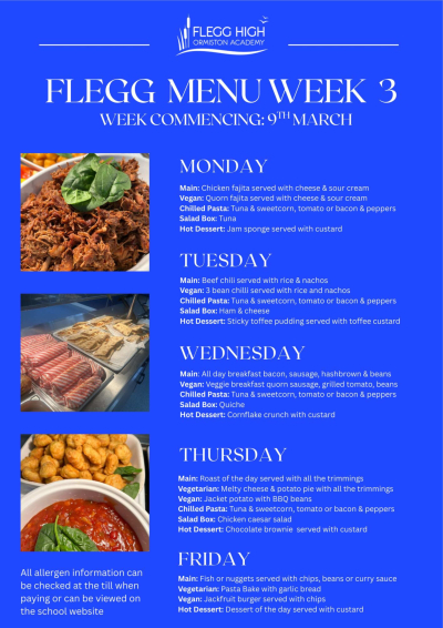 Food at Flegg is prepared by our in-house Catering team using fresh, locally sourced ingredients as far as possible.